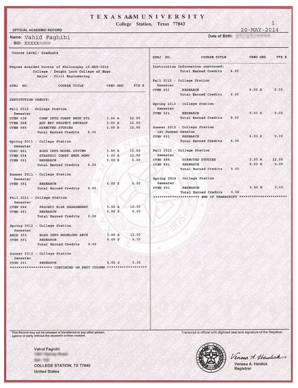 Official Academic Ph.D. Record: